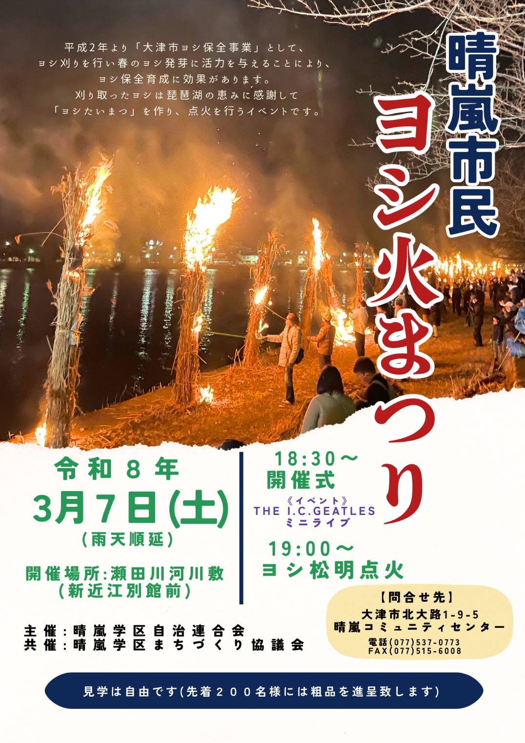 2024年2月5日 3月9日(土)晴嵐学区 ヨシ火まつりの案内。